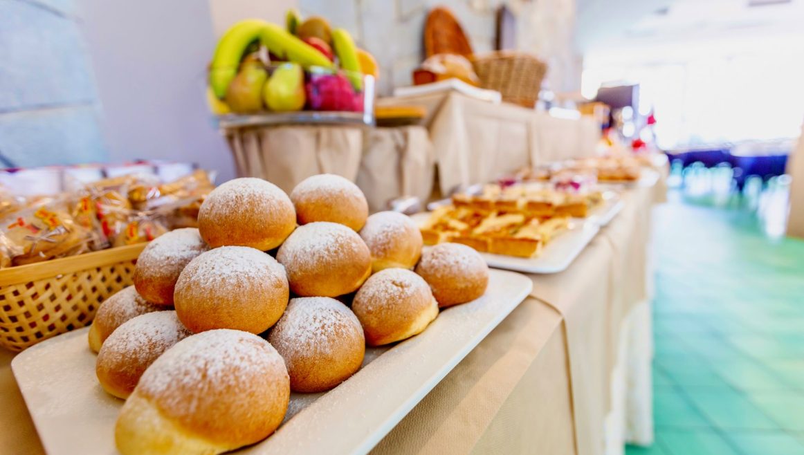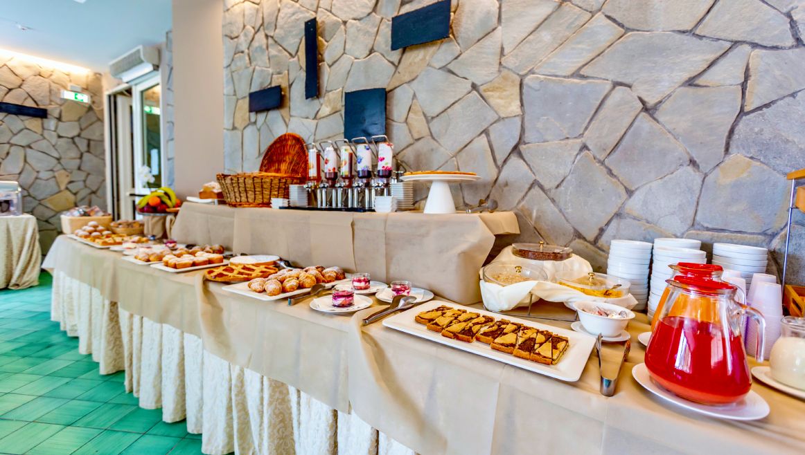 La colazione, con buffet all’americana, propone prelibatezze di ogni sorta, dai dolci preparati dai cuochi, fino a brioche, croissant e marmellate ,oltre che naturalmente pietanze salate per soddisfare le abitudini della clientela straniera.