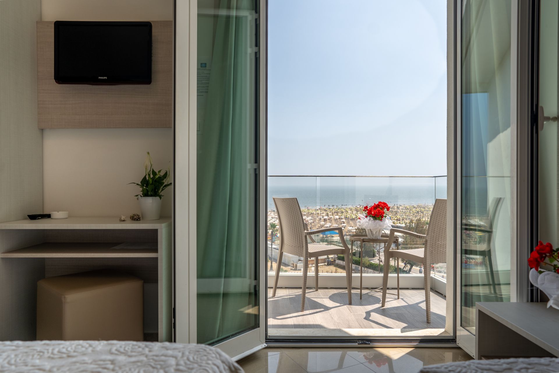 Le camere sono dotate di ogni comfort tra cui balcone affacciato sul mare, aria condizionata e riscaldamento, TV a schermo piatto, telefono diretto e bagno privato con box doccia.