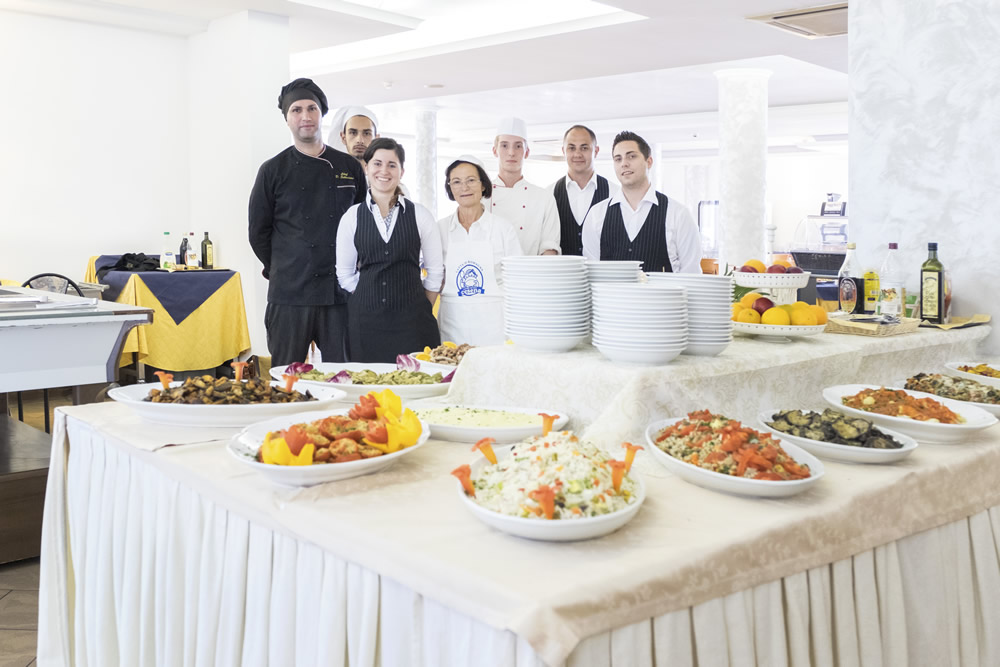Nella grande sala ristorante climatizzata, gli ospiti avranno il piacere di gustare prodotti tipici della tradizione culinaria romagnola. Ogni giorno l’ampia scelta di pietanze proposte nei menu, accontenterà anche i palati più esigenti con piatti a base di carne e pesce e ricchi buffet di antipasti e verdure.