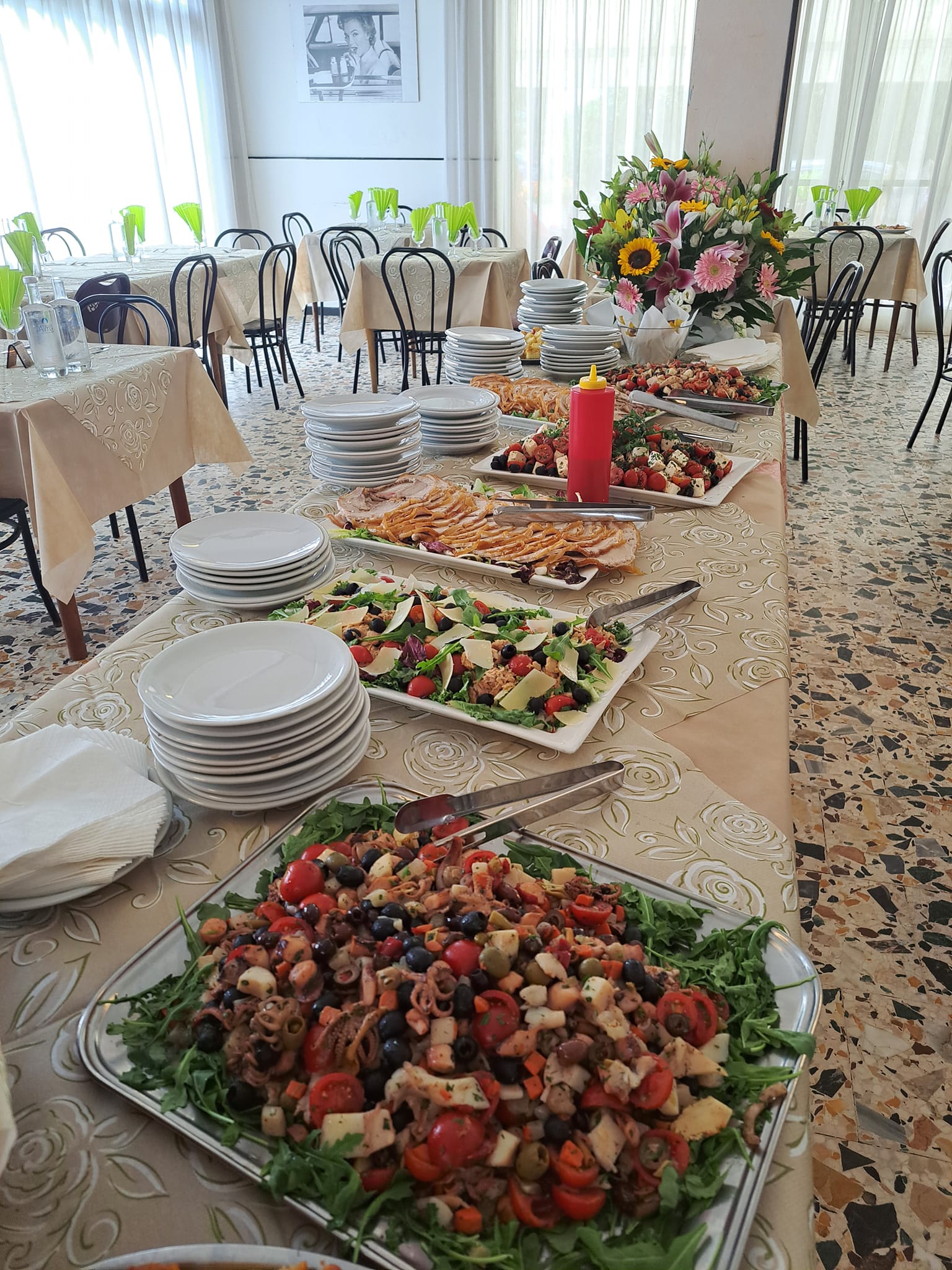 Tutti i clienti potranno scegliere tra due menù di carne o pesce che saranno accompagnati da buffet di frutta e verdura. L’albergo ha inoltre un comodo bar-soggiorno con tv, un ampio terrazzo esterno, l’ascensore ed il parcheggio.